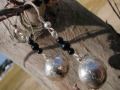 天然石の下にマーキュリーのガーディアンベルが付いたピアスです。
