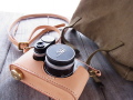 ストラップもキャメルブラウン、金具は同様に真鍮無垢素材を使用。